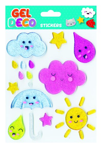 Decora tus ventanas con las pegatinas gel con temática meteorológica. Son prácticos y reutilizables.